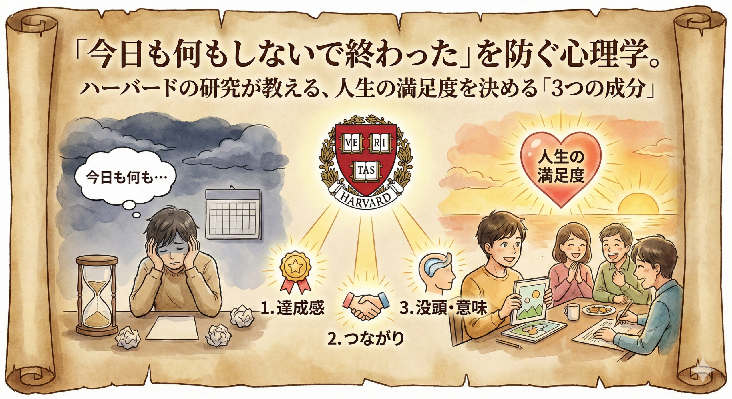 今回は、私が勉強したハーバード・ビジネス・レビュー(HBR)の幸福論に関するメモをベースに、人生の満足度を劇的に高める「休日の過ごし方」について整理します。