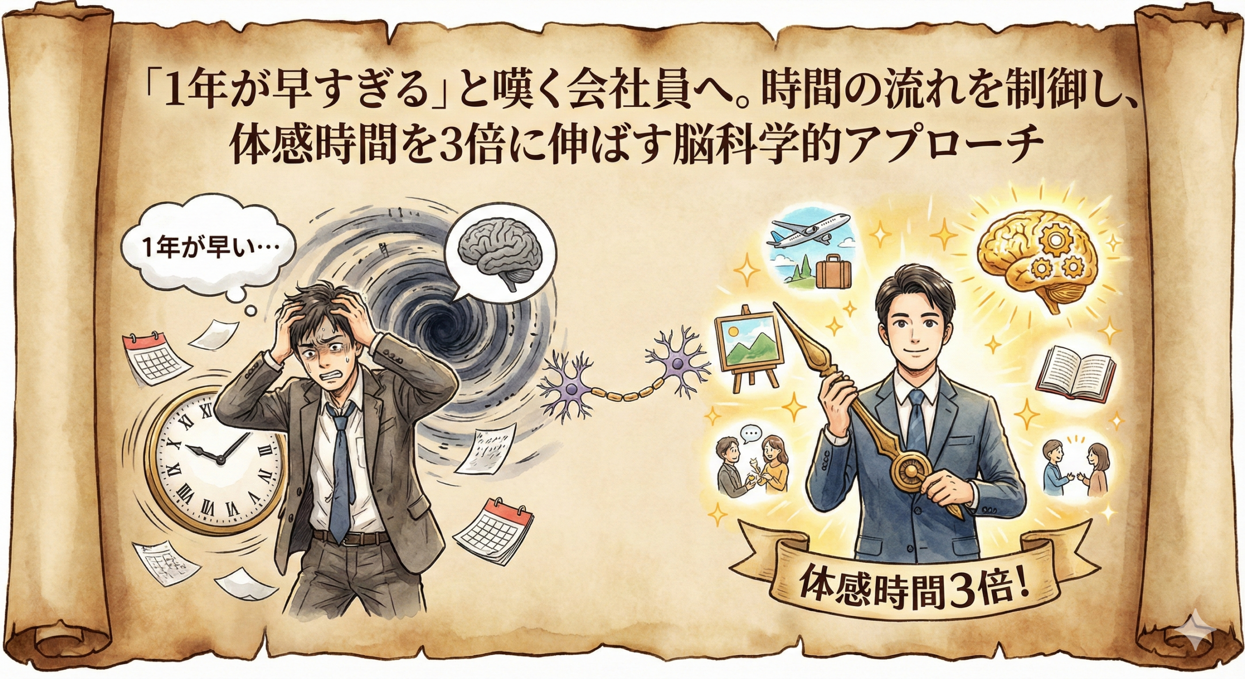 でも、安心してください。 物理的な時間は平等ですが、「体感時間」はあなたの脳の使い方次第で、いくらでも伸び縮みさせることができます。 あなたが感じている焦燥感は、時間の絶対量が足りないからではなく、時間の「密度」が薄まっているからかもしれません。