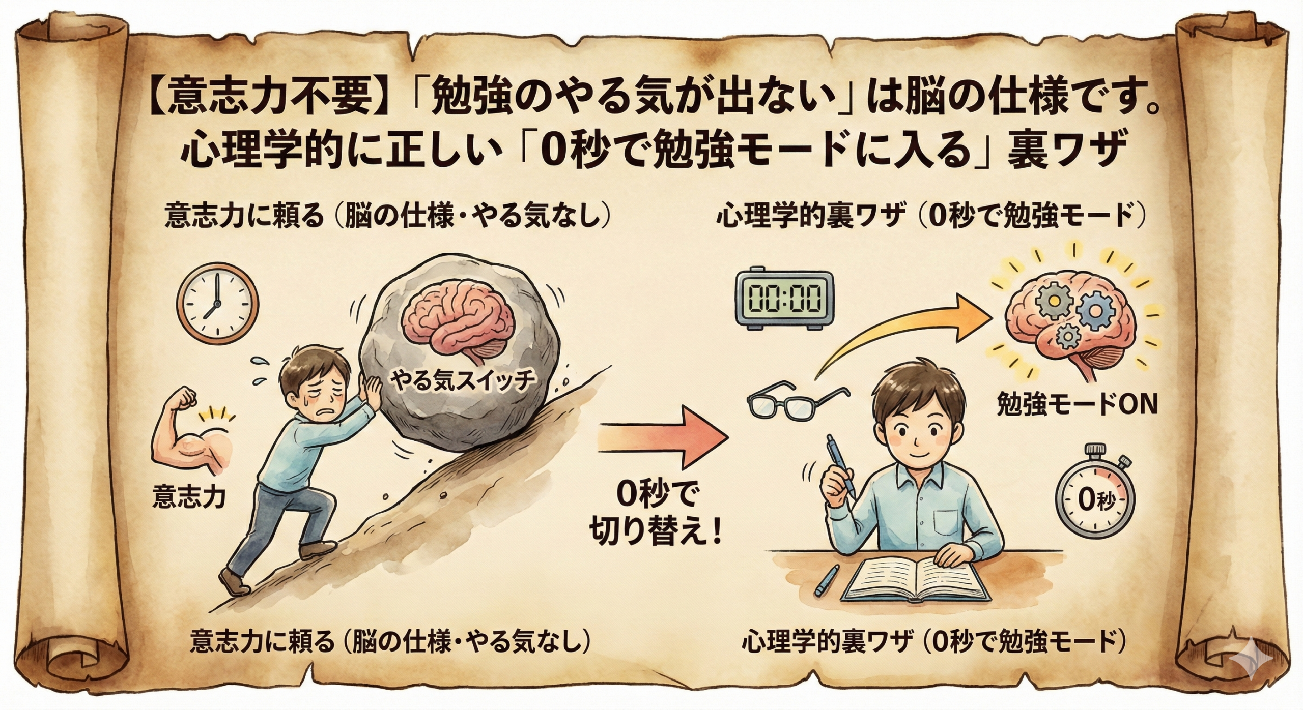 【意志力不要】「勉強のやる気が出ない」は脳の仕様です。心理学的に正しい「0秒で勉強モードに入る」裏ワザ