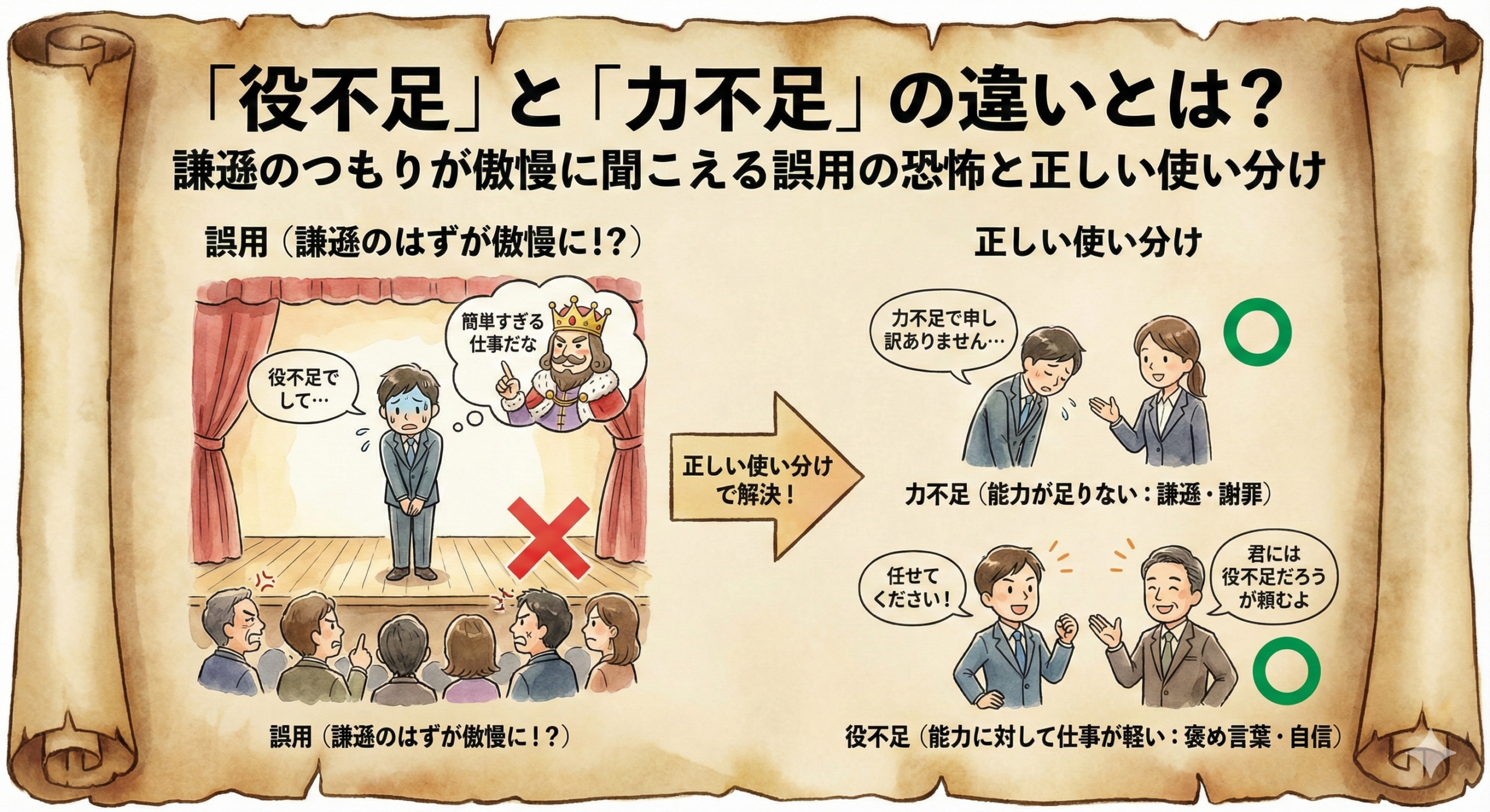 「役不足」と「力不足」。 たった一文字の違いですが、そこには「天と地」ほどの意味の差があります。